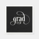 Simple and stylish this black and white graduation party paper napkin design features trendy script text spelling out the word "grad" with the class year that can be personalised to any year. In addition to graduation parties and events, this napkin is also a good choice for class reunions, and alumni events. This napkin is available in 3 sizes: cocktail, luncheon or dinner size with plain or coined edges.