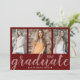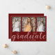 Modern Graduate 3-Photo Collage Red Graduation Announcement