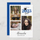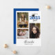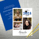 This clean and modern graduation announcement offers a 3 photo collage on a white background. The simple design is accented with blue on a white background.