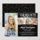 Create your own look with this custom colour graduation party invitation featuring 4 photos and decorative calligraphy typography titles for GRADUATE and CLASS OF YEAR accented with a graduation cap or mortarboard and faux gold confetti. All text, graphics, photo borders and background colours can be changed to school colours or to coordinate with your pictures (shown in black and white). The back features optional gold confetti which can be deleted if not desired. ASSISTANCE: For help with design modification or personalisation, colour change, resizing or transferring the design to another product, contact the designer BEFORE ORDERING via the Zazzle Chat MESSAGE tab below or email makeitaboutyoustore@gmail.com.