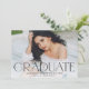 Announce your high school or college graduate's graduation with this modern graduation announcement. The graduation announcement displays "Graduate" in trendy black lettering with the graduation year displayed inside of the letter 'd'. Personalise the front of the announcement with the graduate's horizontal senior photo, name, and school. The announcement reverses to feature an additional photo with space for your custom announcement/message.