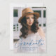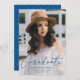 Modern Graduate Blue Script Photo Graduation Announcement