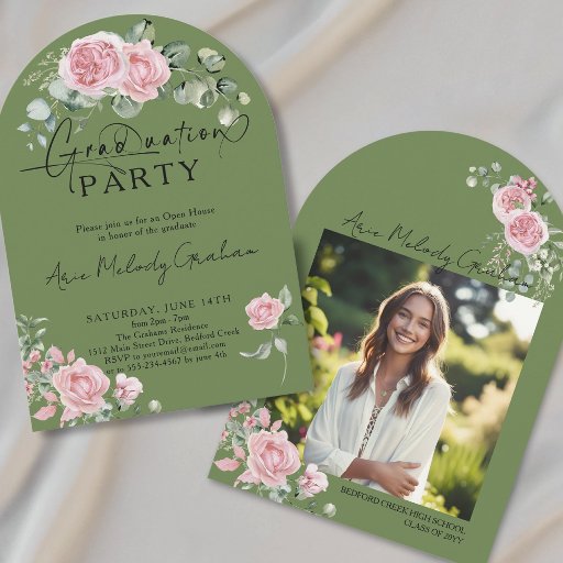 Garden Graduation Pink Roses Handwritten ScriptDesigned by Anna Matilda Hellstrom