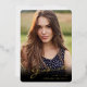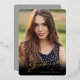This real foil, modern elegant graduation announcement card, features design elements of modern text fused with elegant calligraphy script. The graduates horizontal photo is artfully placed on the front of the card while the back of the card offers personalised text spaces for information about the graduation and future journey. Backgrounds are trendy dark gradient on the front and silver grey on the back or easily customise the back of the card to a colour of your choice. To see more items like this, visit my store here at "www.Zazzle.com/LakeViewCardCo". Thanks