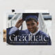 The front of the card showcases a stunning full-page photo of the graduate, capturing this memorable moment in time. Overlaid on the photo is the word "graduate" in a modern and trendy font, along with the graduate's name, school, and graduation year. This bold and eye-catching design ensures that your announcement will make a statement and stand out from the crowd.