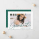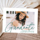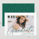 Celebrate the grad with our stylish photo graduation announcement. The graduation announcement displays the graduate's photo with "Graduate" in a green modern calligraphy script overlay. Personalise the front of the modern graduation announcement by adding the graduate's name, school name, and graduation year. The announcement reverses to feature a trendy green and white dotted geometric pattern. The design is perfect for both high school and college graduates.