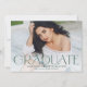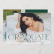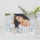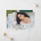 Announce your high school or college graduate's graduation with this modern graduation announcement. The graduation announcement displays "Graduate" in trendy dark green lettering with the graduation year displayed inside of the letter 'd'. Personalise the front of the announcement with the graduate's horizontal senior photo, name, and school. The announcement reverses to feature an additional photo with space for your custom announcement/message.