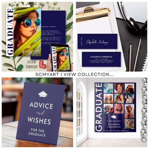 Modern Bold Navy Blue and White Graduation PartyDesigned by Sofia MyArt