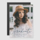 Modern Graduate Navy Script Photo Magnetic Invitation