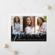 A simple modern card to announcement a graduation. The front features GRADUATE in a white script font. Personalise with a three photo collage and the graduates name, graduating year and school. The reverse side offers an opportunity to personalise with your own personal message or you can delete all text to leave blank.
