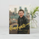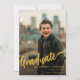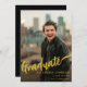 Celebrate your son’s college, university or high school graduation with this stunning stylish gold and black graduate photo graduation announcement card. Featuring modern gold script calligraphy and graduate photo template, this design captures the excitement of new beginnings and joyful celebration. Personalise it with a cherished photo of your graduate using the easy-to-use photo template, and highlight event details in stunning typography. Designed by artist Catherine Sweetman, this unique invitation beautifully combines style with the thrill of your son’s achievement, making it the ideal way to gather loved ones and mark this special milestone.