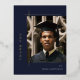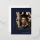 Modern Layout, Gold Foil Photo Graduation Thank You Postcard in navy blue.