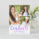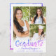 Modern, unique graduation announcement with a multi-colour brush stroke typography GRADUATE title in purple, pink and blue on the front and back with a total of 4 photos (three on the front and one on the back). The back offers a place to include additional information about your graduate (achievements and/or future plans). Also available as an instant digital file download for printing locally or sharing online. ASSISTANCE: For help with design modification or personalisation, colour change, resizing, transferring the design to another product or if you would like coordinating items, contact the designer BEFORE ORDERING via the Zazzle Chat MESSAGE tab or email makeitaboutyoustore@gmail.com.