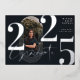 Modern geometric photo arch graduation announcement. The design features an arch line pattern with a photo arch frame. Customise with your grad's photo placed inside a modern arch photo frame. Large text 2025 displayed boldly with "Graduate" Displayed in elegant script. Personalise with the grad's name and school. The reverse side features a modern geometric arch pattern that beautifully complements the front grad card design. You can change the background colour as well as the arch shapes to any colour to complement your photo. Designed by Moodthology Papery.