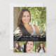 Modern graduation party invitation featuring 5 photos (4 on the front and 1 on the back) with a trendy handwritten script typography GRADUATE title design accented with a graduation cap or mortarboard in white against an editable black background you can change to a school colour, a colour to coordinate with your photos or a favourite colour. The back includes your custom party invitation details. ASSISTANCE: For help with design modification or personalisation, colour change, transferring the design to another product or you would like coordinating items, contact the designer BEFORE ORDERING via the Zazzle Chat MESSAGE tab or email makeitaboutyoustore@gmail.com.