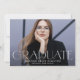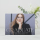 Announce your high school or college graduate's graduation with this modern graduation announcement. The graduation announcement displays "Graduate" in trendy white lettering with the graduation year displayed inside of the letter 'd'. Personalise the front of the announcement with the graduate's horizontal senior photo, name, and school. The announcement reverses to feature an additional photo with space for your custom announcement/message.