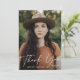 Modern photo graduation thank you card featuring the graduate's vertical photo with "thank you" in a handwritten white calligraphy script overlay. Personalize the front of the graduation thank you card by adding the graduate's name and graduation year. The photo thank you card reverses to feature your custom message with a trendy black and white dotted geometric pattern. Remove the custom message to handwrite your own.