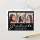 Modern Graduation 3 Photo Collage White Script Announcement Postcard