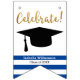 Celebrate your grad with this custom graduation banner featuring his/her name, class of year and photo. Each flag has a fun, festive striped pattern at the bottom and together they read "CONGRATULATIONS GRAD". 3 banners have a black graduation cap with the word "Celebrate" in a script faux gold. And finally, you can upload your grad's photo to the 11th flag. This example has a blue and white background but you can easily change colour by clicking "customise" and then the small eyedropper. Perfect for your graduation party or to hold up during the graduation ceremony. Check out our other graduation invitations, party decor and gifts by clicking on the Colorfulgalshop logo below.