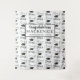 Modern graduation party backdrop or photo op background featuring a repeating pattern of CLASS OF (Year) in black and white and personalised with CONGRATULATIONS graduate's name and school name or other custom text. TAPESTRY OPTIONS: The sample is shown in the 50x60" size--other sizes are available on the ordering page. ASSISTANCE: For help with design modification or personalisation, colour change, resizing, transferring the design to another product or if you would like coordinating items, contact the designer BEFORE ORDERING via the Zazzle Chat MESSAGE tab below or email makeitaboutyoustore@gmail.com.
