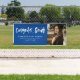 Congratulate the graduate! This banner features a place for a photo of the grad along with a trendy and modern "congrats grad" and custom text that can include name, school, year and future plans in white. Makes a great graduation yard sign to celebrate your senior and also works and graduation party decor. The default colour is a blue, but that's editable to your school colour by clicking "customise." Check out the Lea Delaveris Design graduation collection for coordinating items.