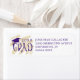 Modern custom colour graduation return address labels featuring hand lettered brush stroke calligraphy typography with class year and graduation cap or mortarboard in your choice of colours (shown in purple and gold against an editable white background that you can change all text and graphics in EDIT using colours and filters to coordinate with your theme colours or create your own look). ASSISTANCE: For help with design modification/personalisation, colour change, transferring the design to another product or if you would like coordinating items, contact the designer BEFORE ORDERING via the Zazzle Chat MESSAGE tab or email at makeitaboutyoustore@gmail.com.