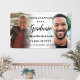 Modern men's graduation banner personalised with the text "Congratulations to our graduate" and a before and after photo collage of the person as a child on the left and a recent one as a graduate on the right. Use this welcome sign inside for a high school or college graduation party, or outside to congratulate them. To change the photo placement: click on the button to customise it further, click on "crop", and move the image.