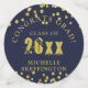 Decorate your graduate's graduation party with editable navy blue and gold confetti table confetti with editable class year (shown in navy blue and gold colours). Personalise with a graduate's name and your custom text. The background colours and text colour, font style, size and placement can be changed to coordinate with your school colours or party decorations in EDIT. Contact the designer via Zazzle Chat or makeitaboutyoustore.com if you'd like this design modified or on another product.