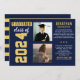 Nice Graduate Invitation Model with high school graduate style with this graduation invitation with 2 photos and party invitation. The two-sided "Now and After" card shows two Graduate photos (one current and one older of his first day of school) with a simple, masculine design with lyrics inspired by sports sweater. The colors navy blue and gold, make this invitation a nice elegant invitation for your graduation of Men or Women **Photo tip: cut your pictures in a square shape before uploading.