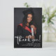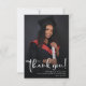 Modern, trendy Graduation thank you card. Design features 1 photo, handwritten white script ''thank you'', name, school name and class of on the front. Personalise further with another photo and your thank you message on the back.