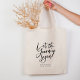 Let the journey begin! Modern graduation celebration gift tote bag with an elegant script calligraphy design and your custom text message of congratulations to the graduate below.