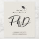 Pairs well with a PHD! Modern graduation celebration wine labels with an elegant script calligraphy design, a soaring grad cap and your custom text message of congratulations to the graduate below.