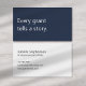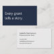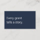 A modern, minimalist business card perfect for grant writing professionals. The front features a deep navy blue background with the phrase "Every grant tells a story" in soft white text. The reverse has a soft white background with dark charcoal grey text and space for your contact details. All text on the card is fully editable.