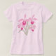 Bold modern floral stylised sympodial cattleya orchid design in shades of pink and green. Designed by Sarah Trett.