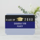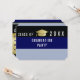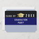 A stylish and modern grad design with horizontal blue and black stripes, with custom text lines to add all the information your guests will need to join your graduation party