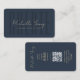 Modern Graphic Designer Content Creator Professional Monogram Dark Blue business card with QR code