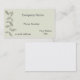 An elegant business card with ghost leaves spilling down the side.