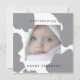 Welcome your little one to the world with this modern and minimalist baby announcement card featuring a sweet square photo frame, gray watercolour splashes, and classic typewriter-style text. It’s the perfect blend of simplicity and charm—ideal for sharing your baby’s first photo and name with friends and family. Whether you prefer a short introduction or a heartfelt message on the back, this announcement is a beautiful way to mark this joyful milestone.