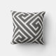 Modern Greek Key Pattern in Charcoal and White Cushion