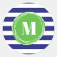 Modern Green And Blue Stripes Monogram Classic Round Sticker