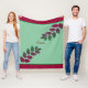 Modern Green and Burgundy Plant Leaves Fleece Blanket