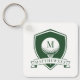 Modern Green and White Name Initial Monogram Golf Key Ring