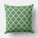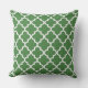 Modern square accent pillow features an elegant Moroccan quatrefoil pattern in foliage green and white colours. Note, the background colour can be modified to coordinate with your home decor.
