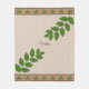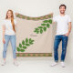 Modern Green Bay Leaves on Beige Fleece Blanket