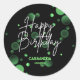 Modern Green Bokeh Gradient Black Happy Birthday Classic Round Sticker