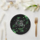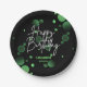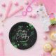 A modern, stylish and glamourous birthday paper plate. This design features a vibrant typography "Happy Birthday" with green gradient bokeh on a black background. Personalise and add your party details. Make your milestone birthday an extraordinary event!