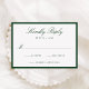This wedding RSVP card features elegant dark green calligraphy script at the top, paired with classic serif lettering and space for your desired wedding response date. A rich dark green border frames the design, adding depth and structure while maintaining a clean, modern aesthetic. The balanced layout offers a refined way for guests to reply, making this RSVP card ideal for modern classic, formal, and estate-style weddings. Personalize the wording to create a response card that feels cohesive and elevated.