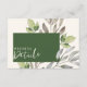 This beautiful wedding details enclosure card has been painted in watercolour and features stunning wedding foliage in shades of green and grey. Customise it with your personal wedding information and add a QR code.