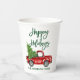 Modern Green Brush Script Happy Holidays Watercolor Vintage Red Truck with Christmas Tree Paper Cups