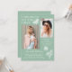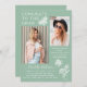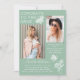 Modern Greyed Jade Green White Butterfly Photo Graduation Party Invitations features the simple text "Congrats to the Grad" accented with a flower and butterflies with two of your favourite photos and personalised with name and graduation party details in elegant white script typography. Personalise by editing the text in the text boxes provided and adding your favourite photos. Designed by ©2023 Evco Studio www.zazzle.com/store/evcostudio